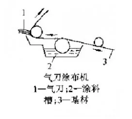 由單棍式輥紙徐布機(jī)和氣刀等組成的涂布機(jī)。涂布輥向基材涂布涂料,用氣刀噴出的氣流吹去過剩的涂料以調(diào)節(jié)涂層厚度,同時(shí)使涂料面光滑平整。適用于固體組成多、鉆度低的涂料,如水溶性涂料和有機(jī)溶膠。主要用于制造高級(jí)印刷紙、記錄紙、乳膠型感光紙等。